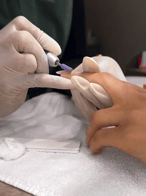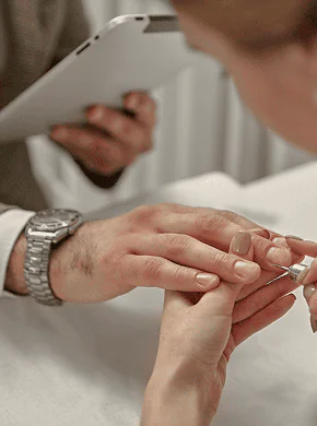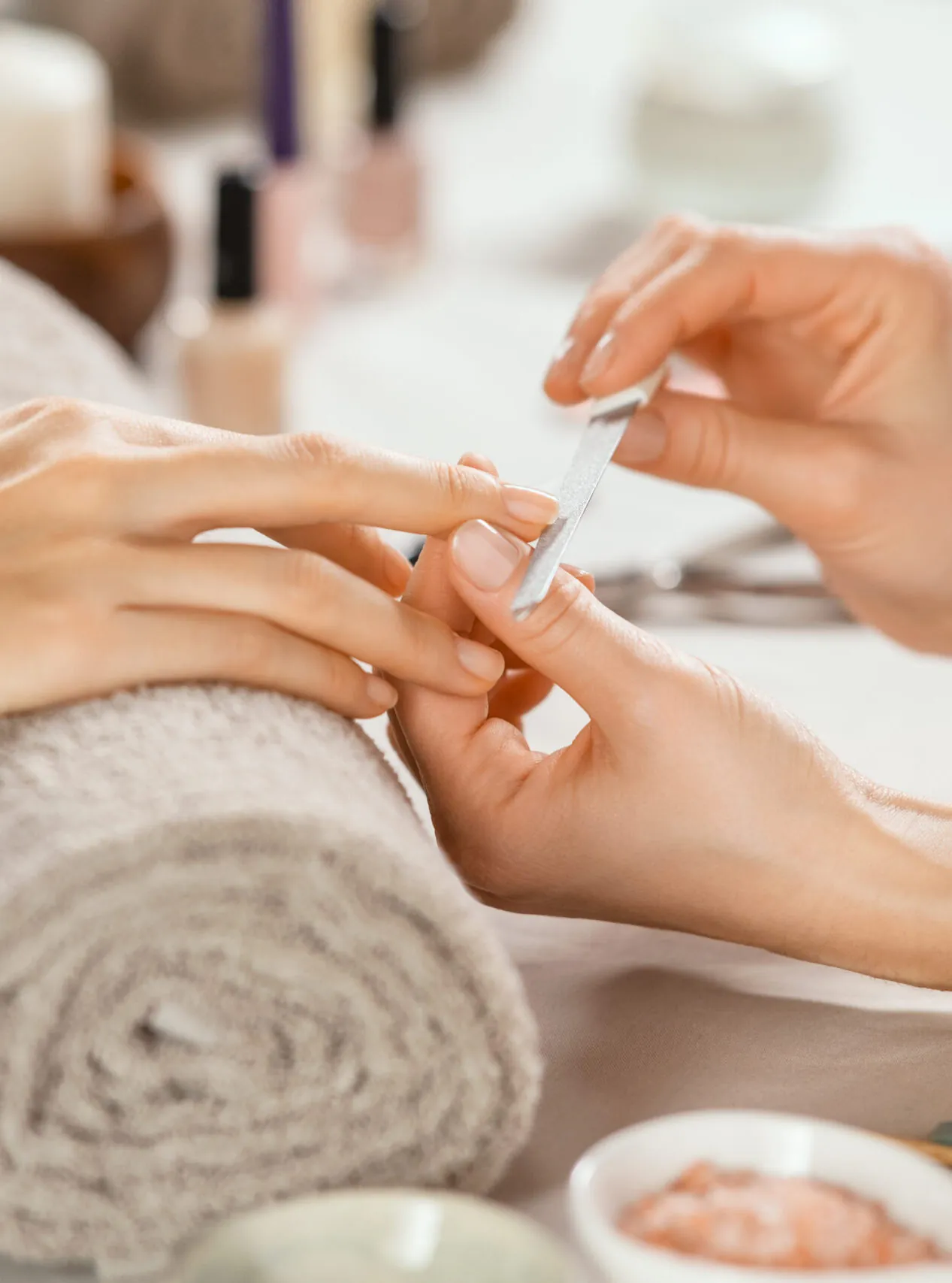 Our defining service. Nails are shaped with precision, cuticles refined, polish applied seamlessly, and finished with premium cuticle oil and a restorative hand massage.